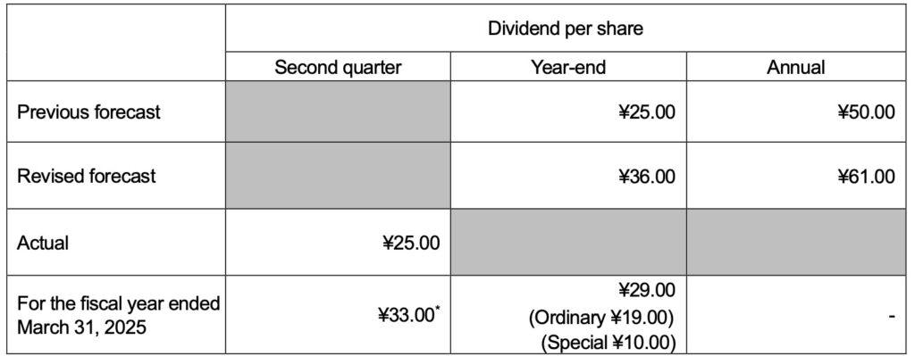 The dividend forecast for the fiscal year ending March 31, 2026 has been revised due to an expected increase in net income attributable to owners of the parent company in the revision to the consolidated earnings forecast.