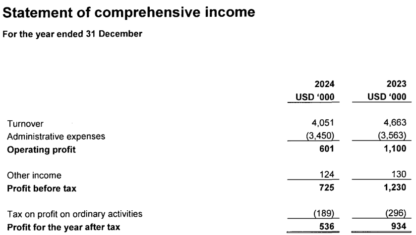 Following a 14% drop in 2023, Revenues at ParFX came in at USD $4.1 million in 2024, down by 13% from $4.7 million in 2023 (and $5.6 million in 2022), which the company said was mainly due to a decrease in customer base. This also includes the provision of electronic data to third parties (data sales) of $124K (2023: $130K). Net Profit of $536K was off by 43% versus $934K in 2023 (and $1.7 million in 2022).