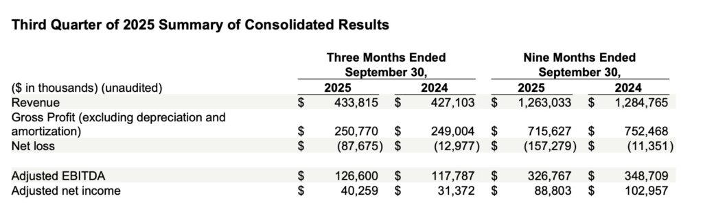 Net loss for the third quarter was $87.7 million, compared to $13.0 million in the prior year period, mainly due to a charge to income tax expense of $81.2 million related to the recognition of an additional valuation allowance against the company’s U.S. deferred tax assets due to the enactment of the One Big Beautiful Bill Act in July 2025.