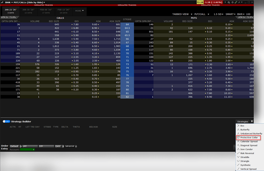 Electronic trading major Interactive Brokers has added Protective Collar options trading strategies in in the Strategy Builder of the Option Chain in the TWS platform.