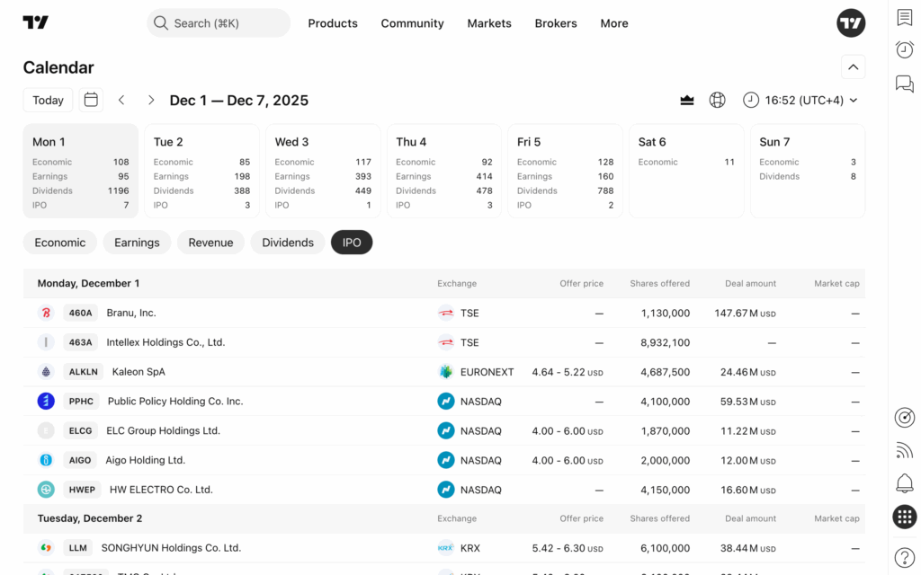 TradingView has added comprehensive IPO data, including the IPO Calendar, upcoming IPO instrument pages, and detailed IPO insights.