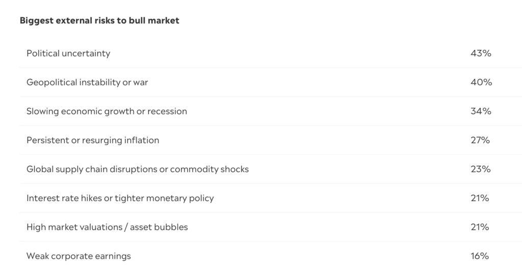 The latest Retail Investor Beat reveals that investors see political uncertainty (43%), geopolitical instability or war (40%) and slowing economic growth or a recession (34%) as the leading external risks to the bull market in 2026.