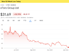 What led to shares of eToro hitting a post-IPO (and all-time) low?