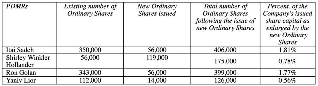 These new Ordinary Shares have been issued to the ESOP s 102 Trust for the benefit of certain Directors, employees, and contractors of the Group, including certain person discharging managerial responsibilities (“PDMRs”).