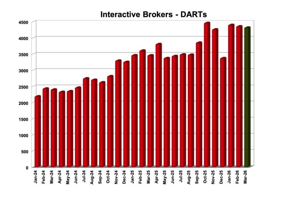 Interactive Brokers registers 25% Y/Y increase in DARTs in March 2026