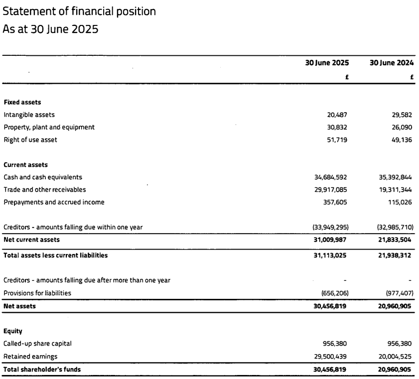 As at year ended 30 June 2025, the balance of client funds held within segregated accounts was £26.2 million, down slightly from £27.0 million the previous year.