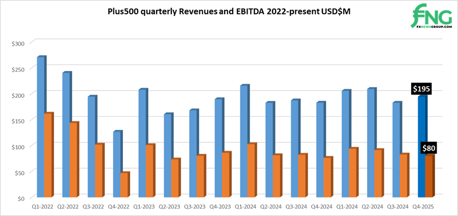 For the year, Plus500 Revenues of $792.4 million in 2025 were up 3% over 2024’s $768.3 million. Net Profit of $281.3 million was up 3.0% over 2024’s $273.1 million.